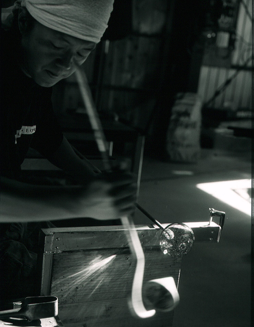 作品はもちろんの事、ガラスを溶かす溶解炉等のシステムも自己で設計した手作りなんです。